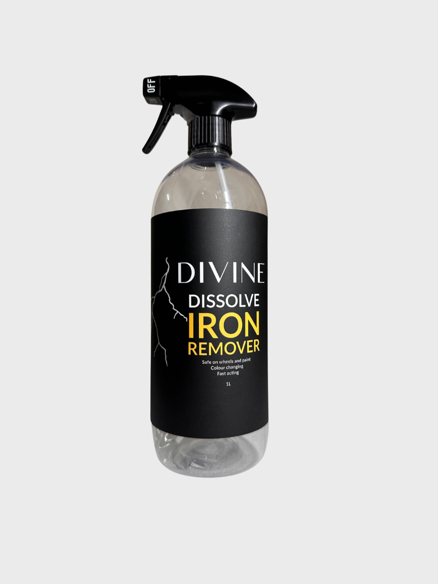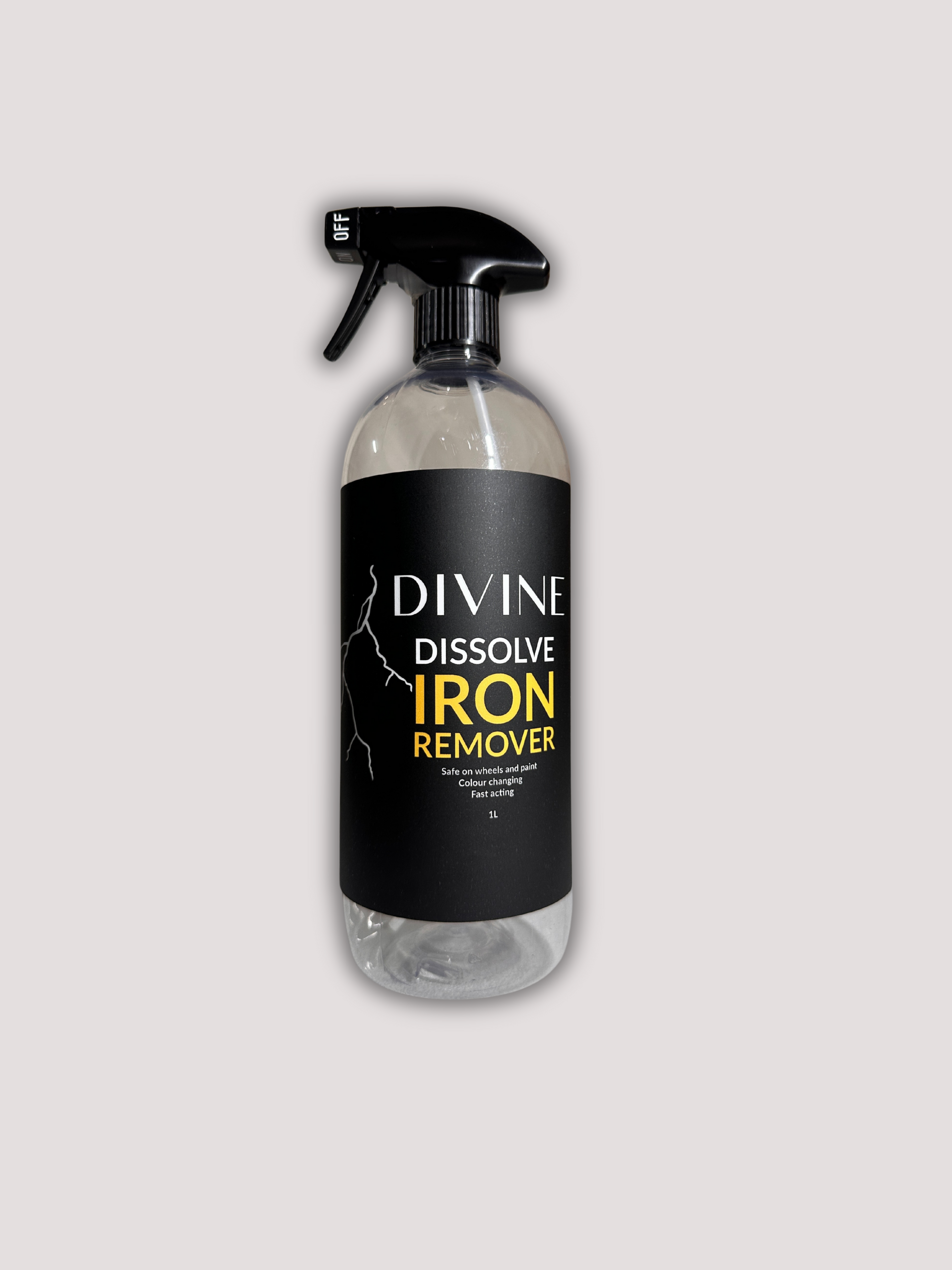 DIVINE DISSOLVE Iron Remover is a fast-acting, color-changing decontaminator designed to safely dissolve embedded iron particles from wheels and painted surfaces. Unlike traditional cleaners, its advanced formula targets ferrous contaminants, ensuring a deeper clean while remaining pH-balanced and safe for all surfaces.
