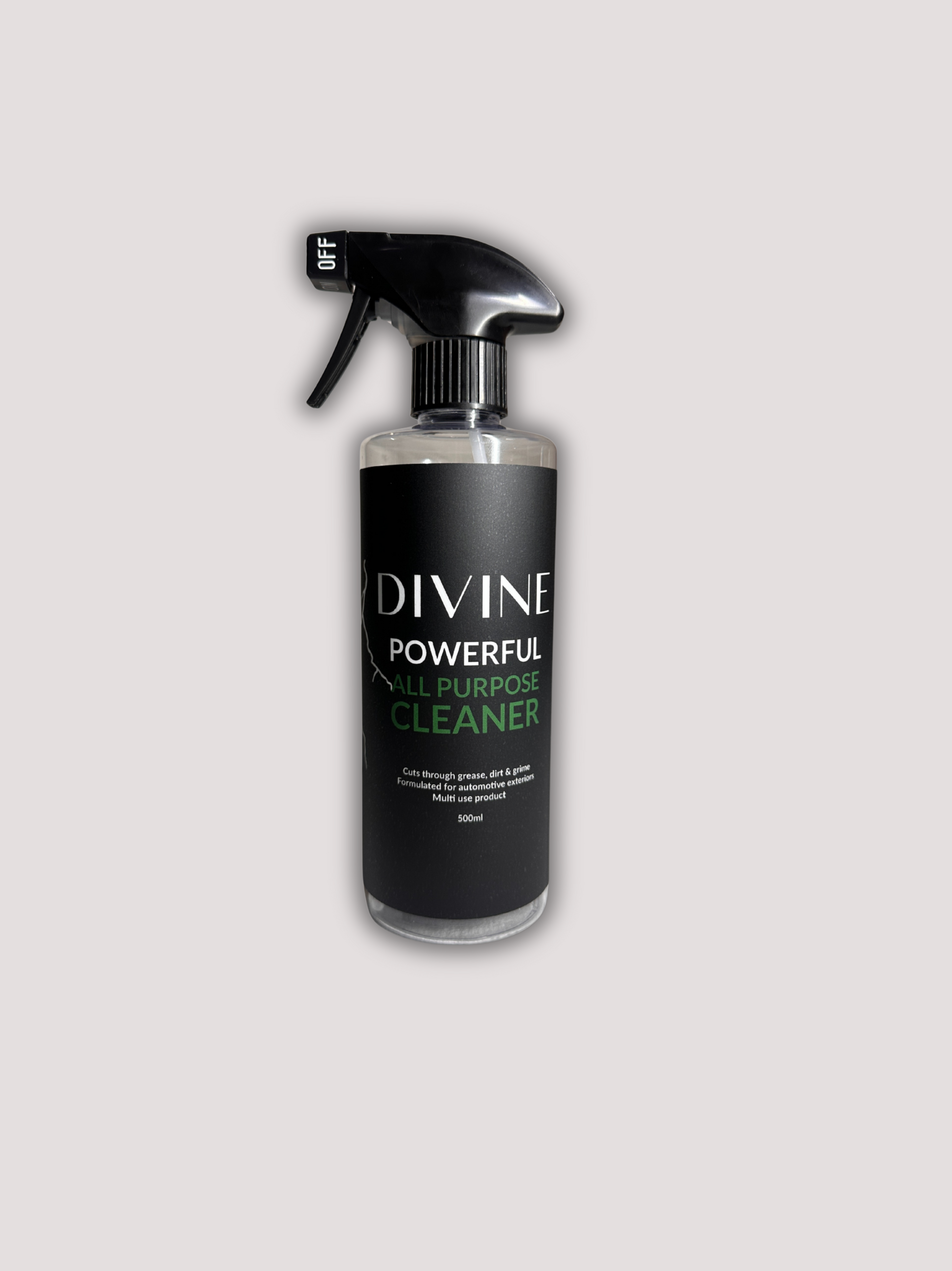DIVINE POWERFUL All Purpose Cleaner is a high-performance, professional-grade formula specifically formulated for automotive exterior use. Unlike generic cleaners that may lack the strength for tough vehicle grime or be too harsh on delicate surfaces, POWERFUL is designed to provide maximum cleaning power while being safe for automotive exteriors.